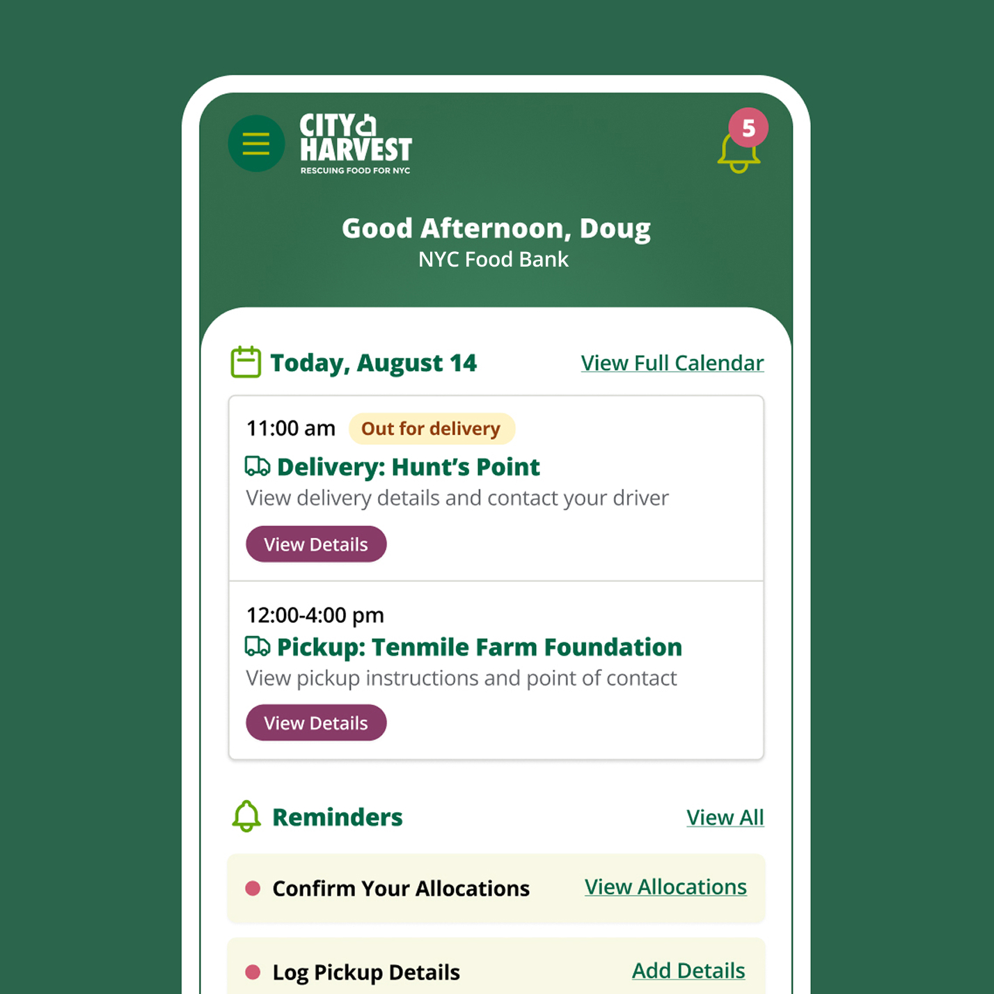 The product successfully reduced coordination overhead for City Harvest staff and gave agency partners, who know their communities best, direct control over their operations.
